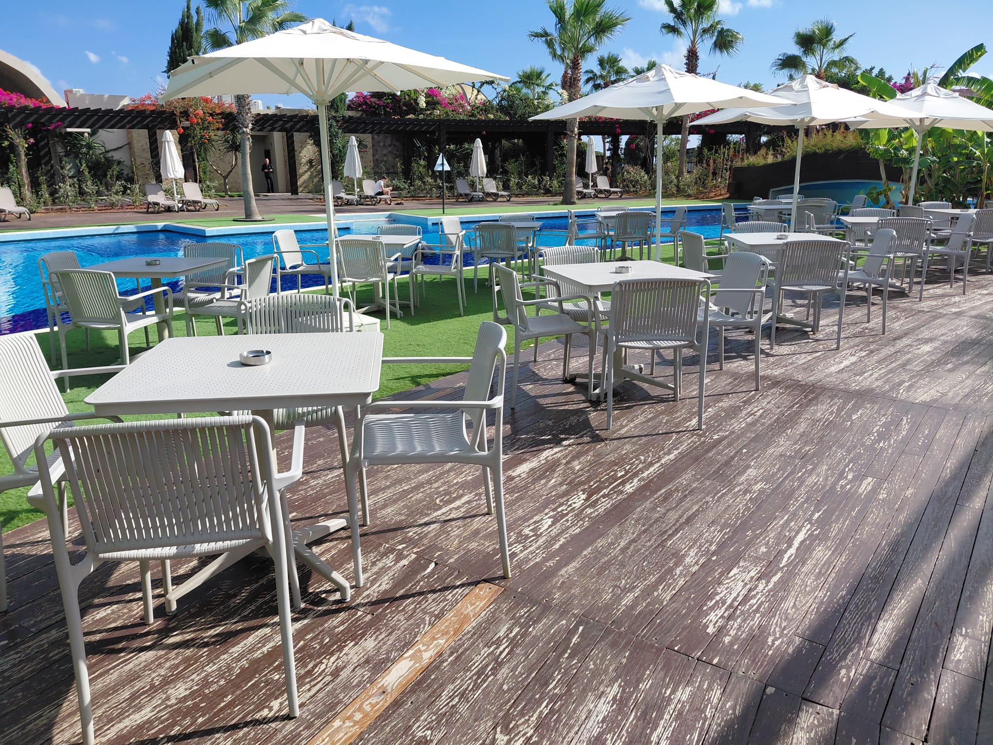 Moon 4 Kişilik Kare Polipropilen Masa Beyaz & Nes Kollu Sandalye Beyaz