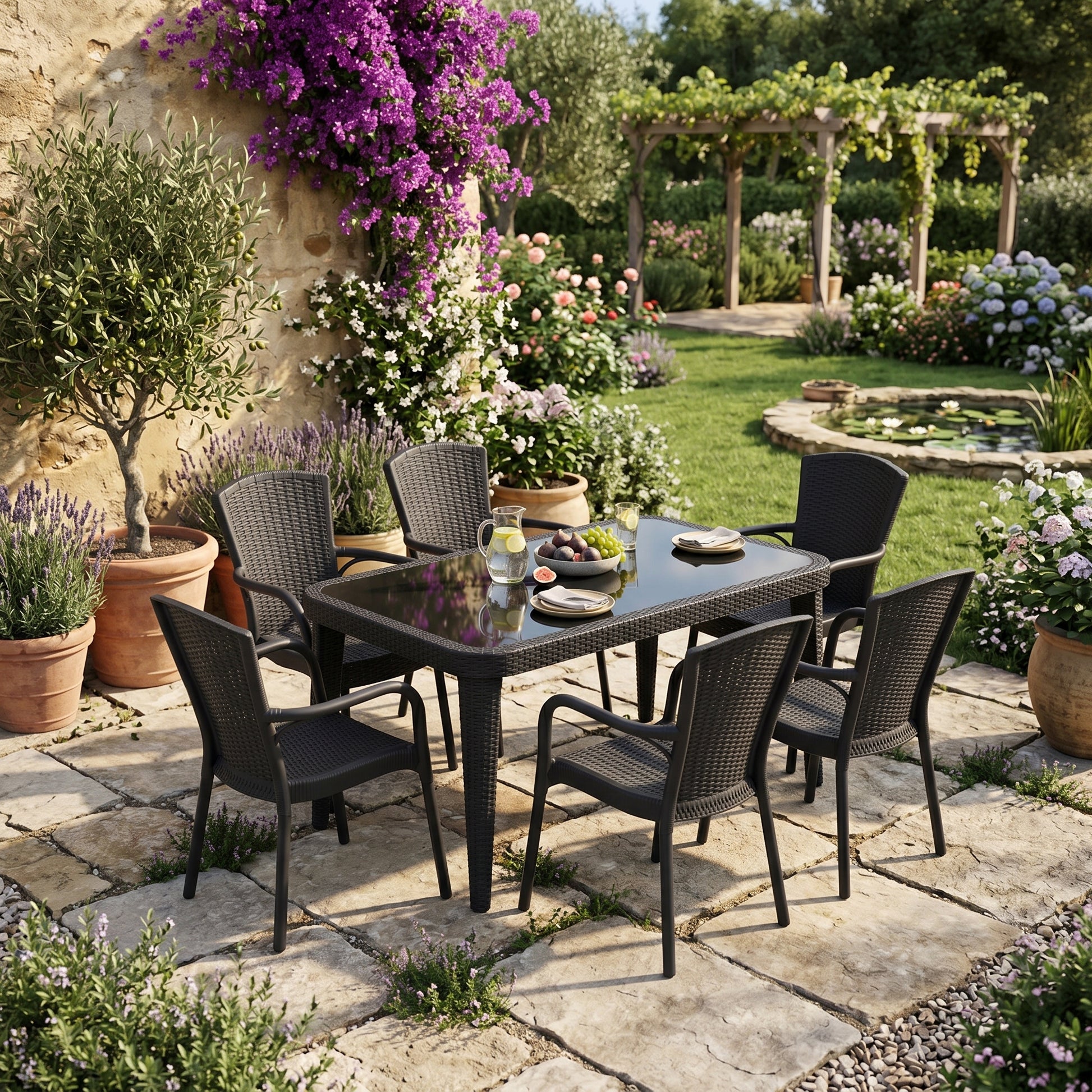 Osaka 6 Kişilik Dikdörtgen Polipropilen Masa Antrasit & Royal Sandalye Antrasit
