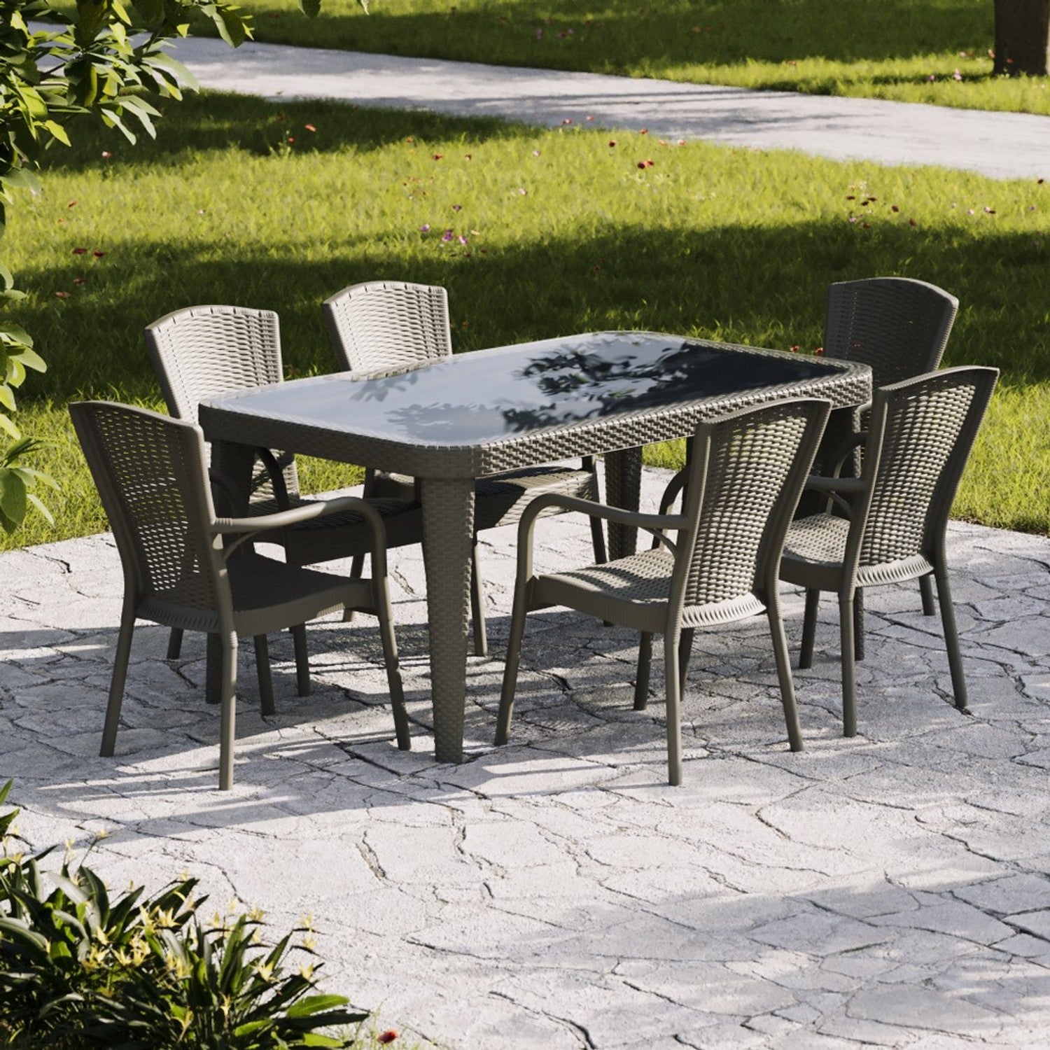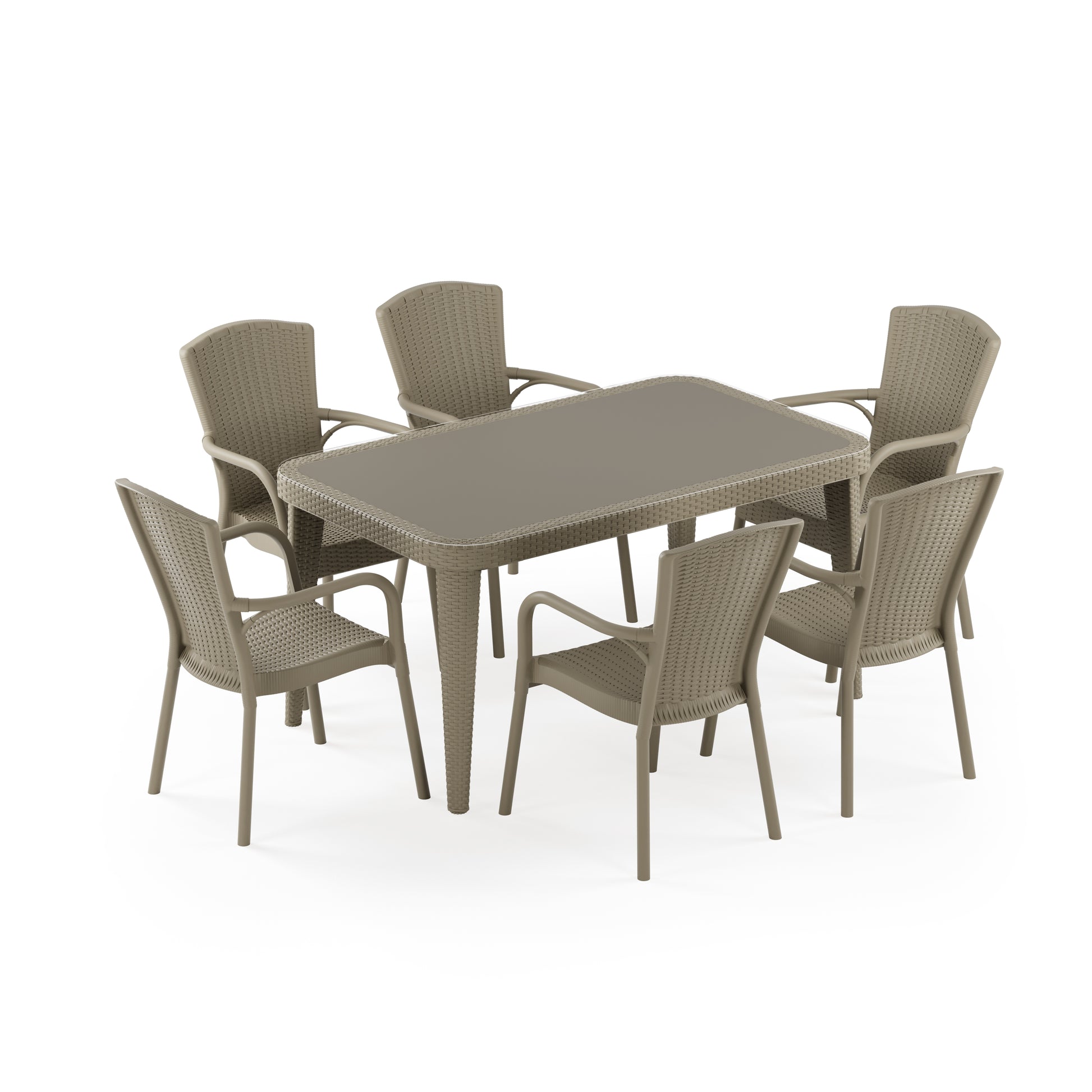 Osaka 6 Kişilik Dikdörtgen Polipropilen Masa Vizon & Royal Sandalye Vizon